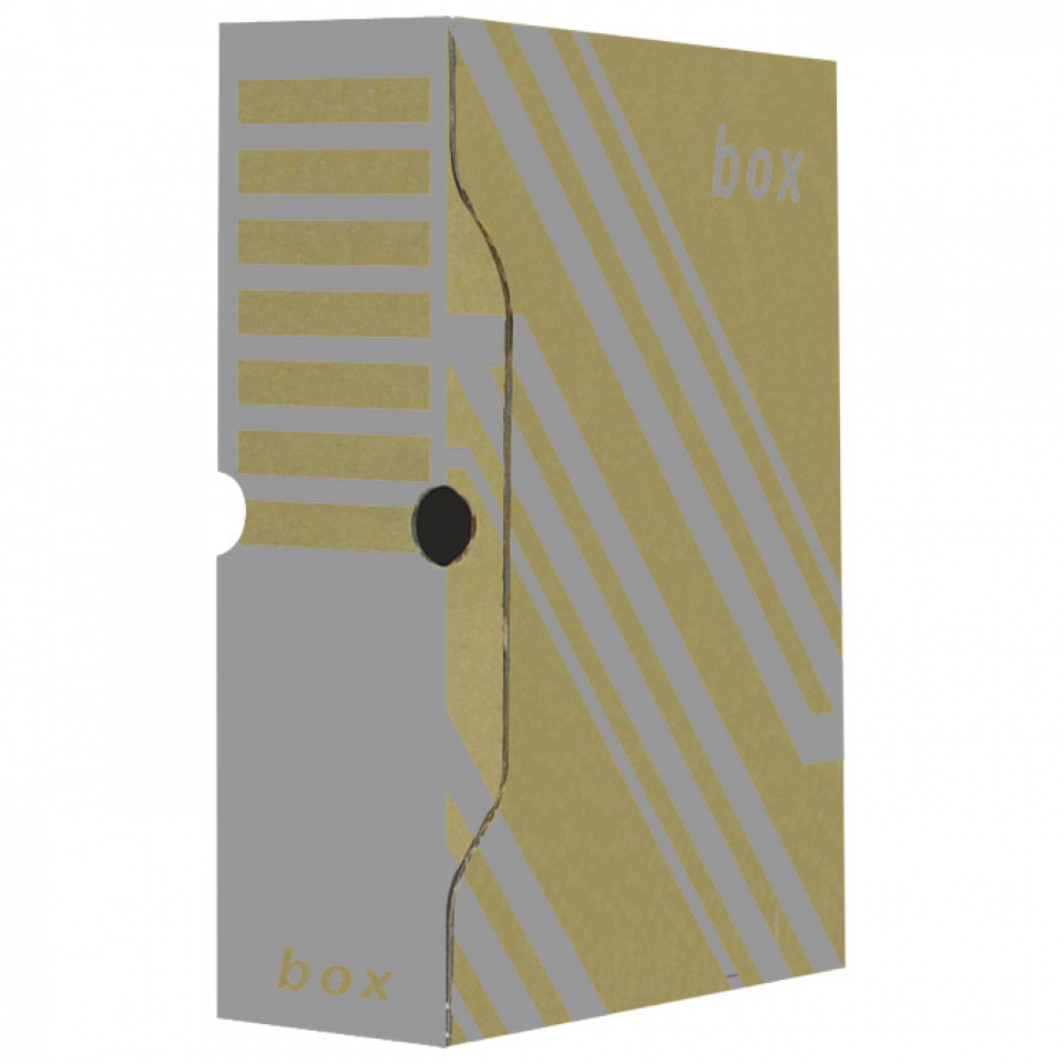 arhivska kutija; format A4; dimenzija 297x339 mm; hrbat 80 mm; karton; ima rupu za prst; smeđa boja