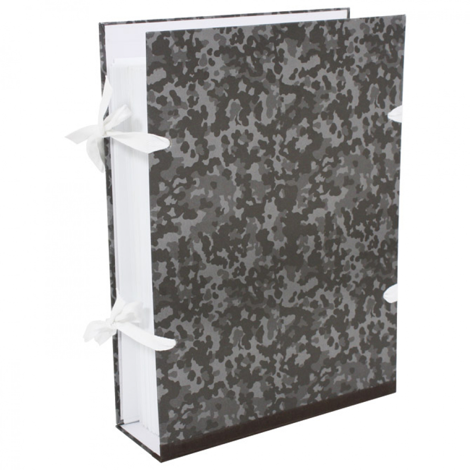 arhivska mapa; klapa s etiketom; kaširana (cijeli presvućena papirom); 2 vrpce dužine 1,2mm i širine 9mm; dimenzije 33x24mm; marmorirana boja