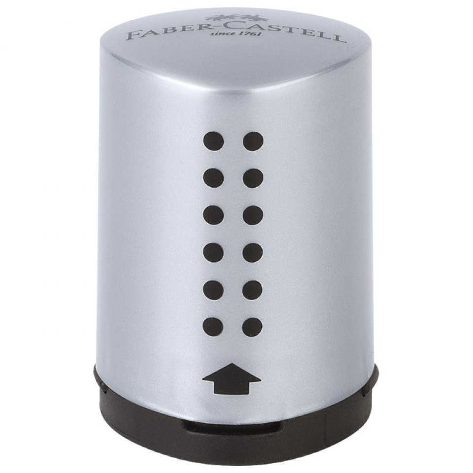 mini šiljilo PVC s PVC kutijom; 1 rupa; dimenzija: 3,5x2,5 cm; izmjenjivi nož; sa sigurnosnim vijkom; ergonomsko; trokutasto tijelo; s patentiranim gripom za sigurno, ne klizno držanje; za trokutaste, šesterokutne i okrugle olovke standardne debljine (grafitne i drvene bojice) sa kutom šiljenja od 24°; poklopac sprečava ispadanje otpada; srebrna boja