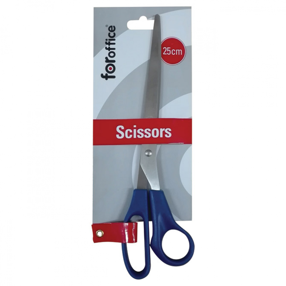 škare uredske od visoko kvalitetnog nehrđajućeg čelika; s plastičnim rukohvatom; duljina 25cm; plava boja