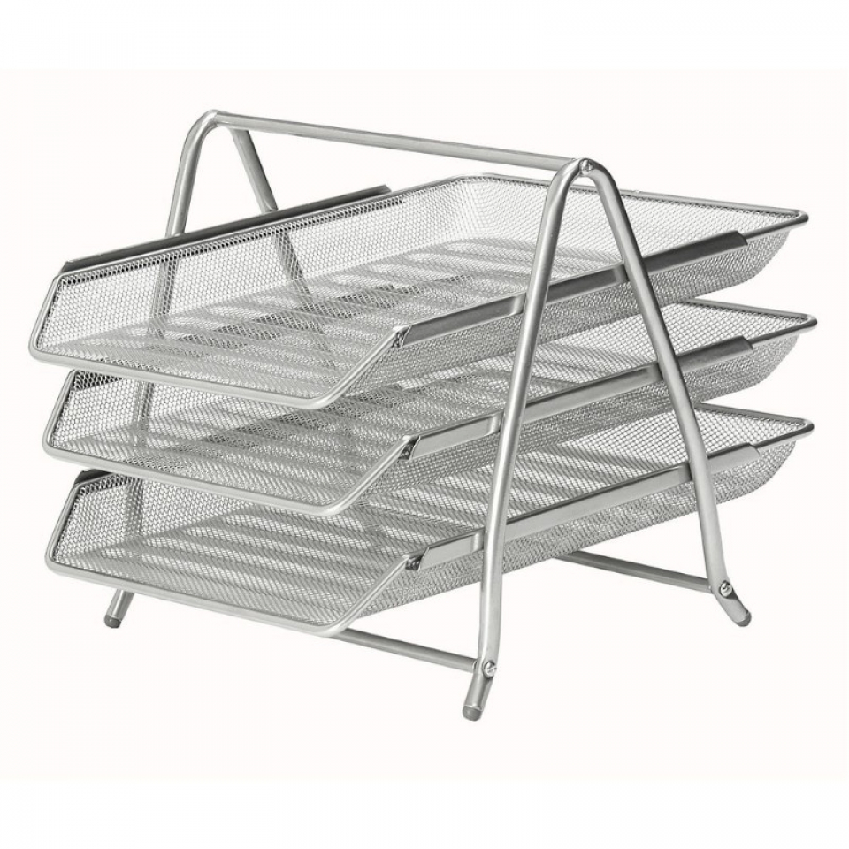 stolni stalak za spise; 3 ladice; vodoravni; žica; za spise formata A4; dimenzija 278x350x275 mm; srebrna boja