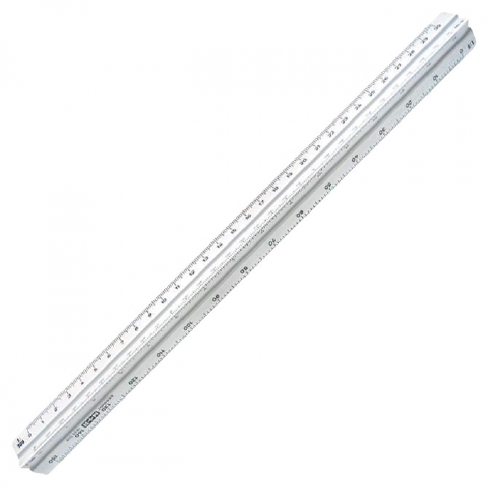 trobridno mjerilo od bijelog postojanog umjetnog materijala; precizne mjerne linije su dvostruko označene; dimenzije u centimetrima i metrima olakšavaju očitavanje; sa žljebovima u dvije boje;