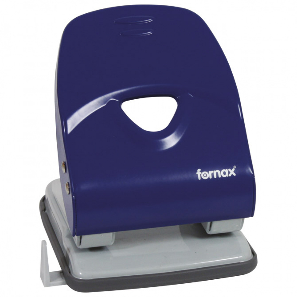 bušilica za papir s 2 rupe; buši do 40 listova ili debljinu 4 mm; spremnik za otpadni papir i plastični graničnik; razmak između rupa je 80 mm; plava boja