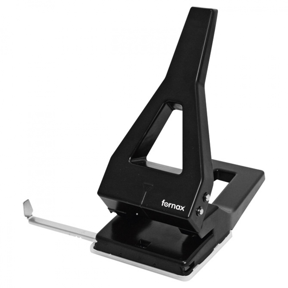 bušilica za papir s 2 rupe; buši do 50 listova ili debljinu 5 mm; spremnik za otpadni papir i plastični graničnik; razmak između rupa je 80 mm; crna boja