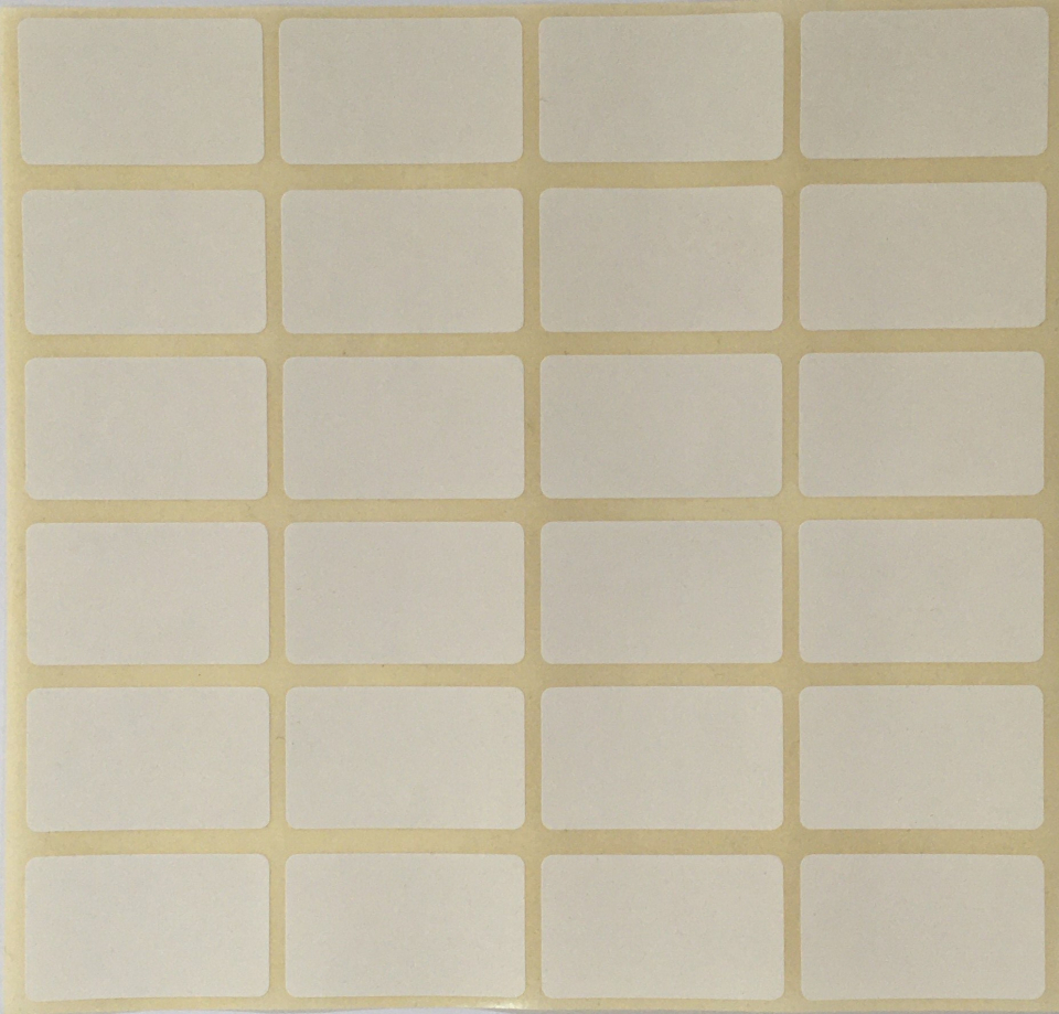 etikete samoljepljive na listu formata A5, 24 komada na svakom listu; dimenzija svake etikete 32x19 mm