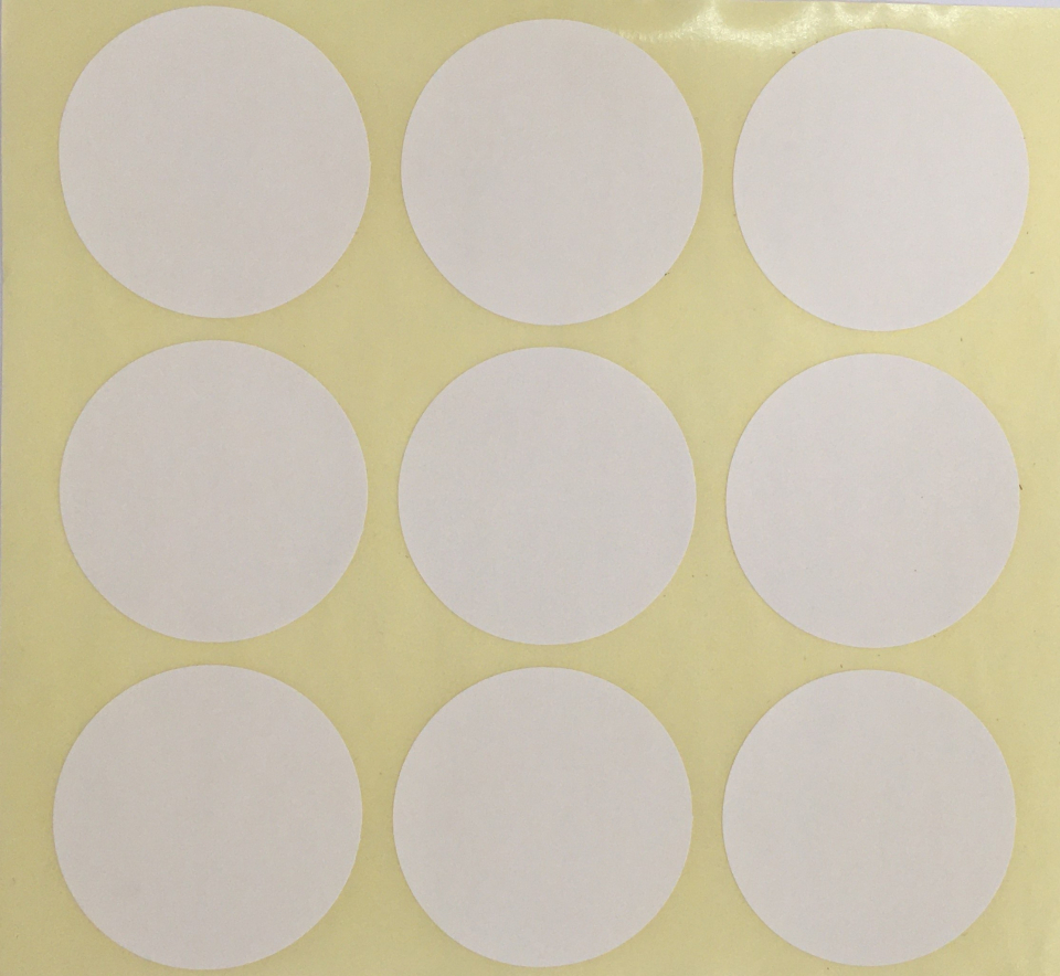 etikete samoljepljive na listu formata A5, 9 komada na svakom listu; etiketa kružnog oblika dimezija 40 mm