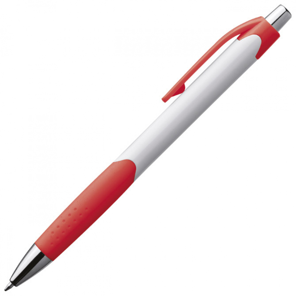 plastično tijelo kemijske olovke; sa gripom; bijelo-crvena boja