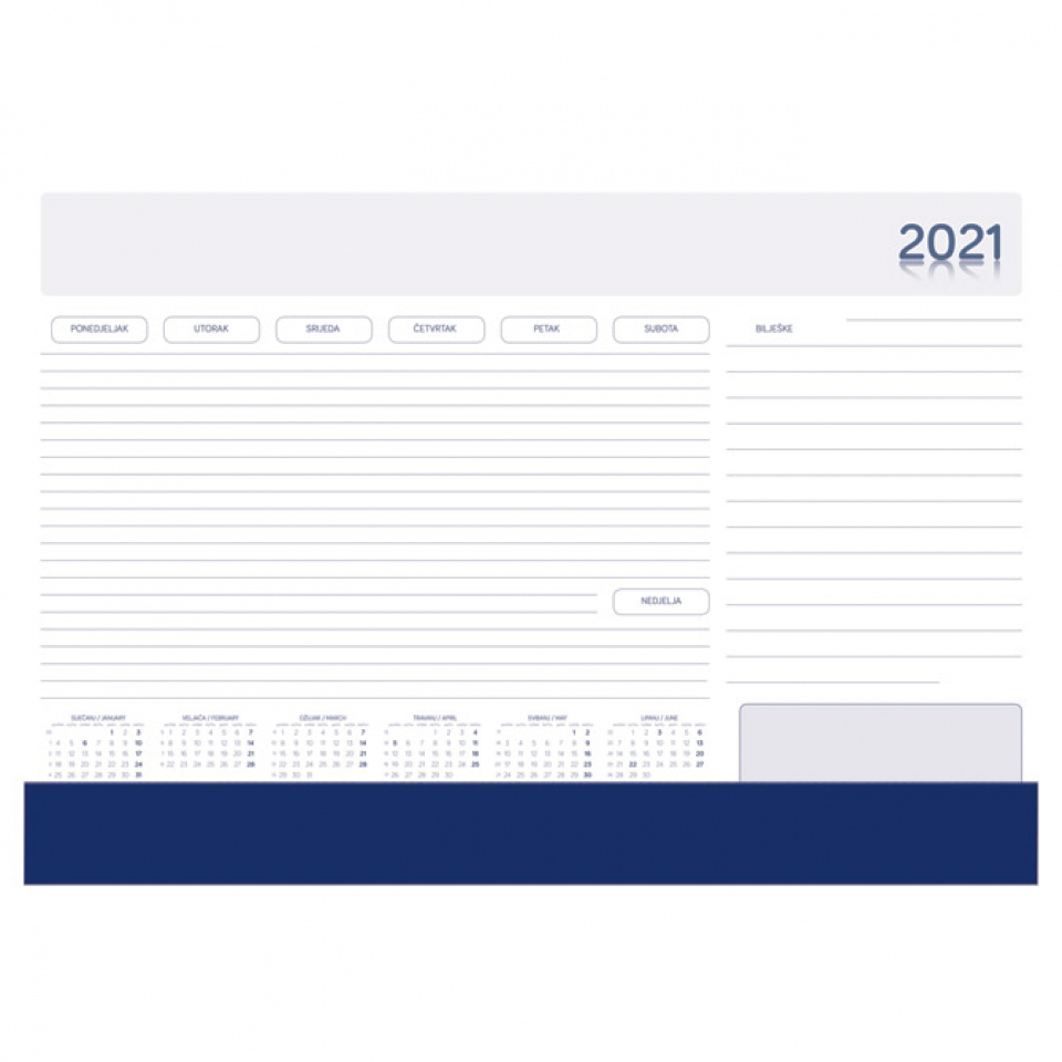 mapa stolna; dimenzija: 60x42 cm; sa blokom; plava klapa (bijeli papir); 52 lista