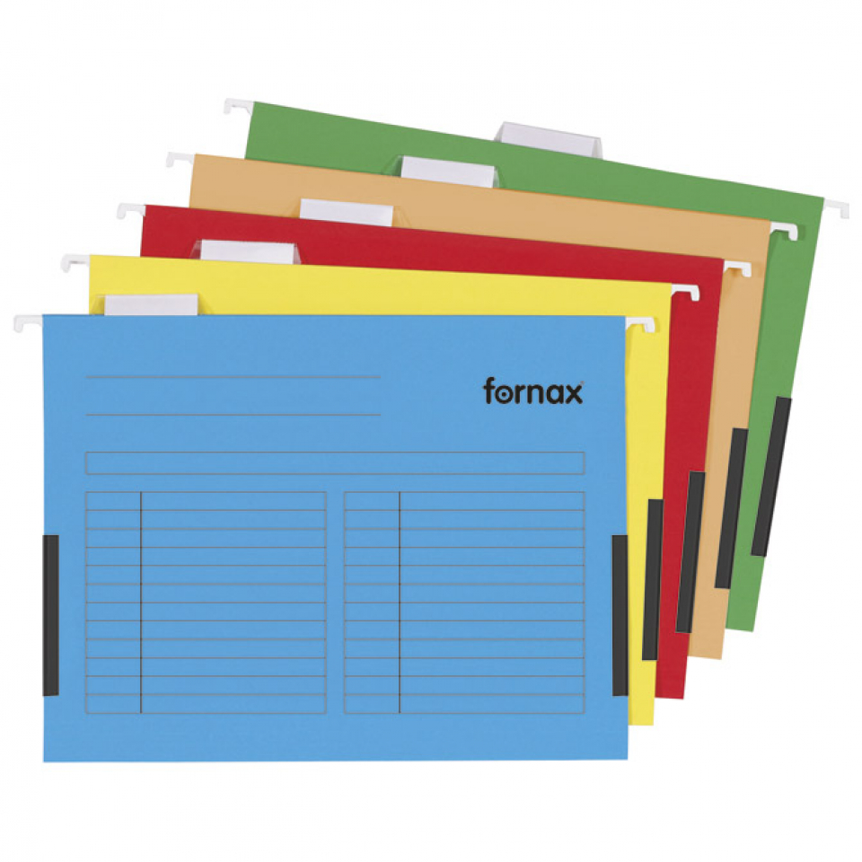 mapa viseća s platnom; format: A4; karton: 230 g/m²; razmak između kukica nosača: 330 mm; metalni nosači; "V" dno; pomični jahači; ojačane vodilice; bez mogućnosti međusobnog povezivanja; platno na rubovima; plava boja