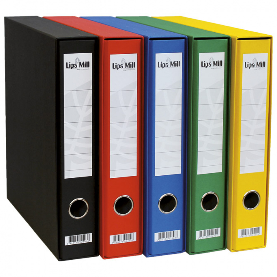 format:A4; hrbat 60mm; etiketa otisnuta na hrbtu; kaširan (cijeli presvučen papirom); debljina uloška 1,75mm; debljina kutije 1,25mm; plava boja