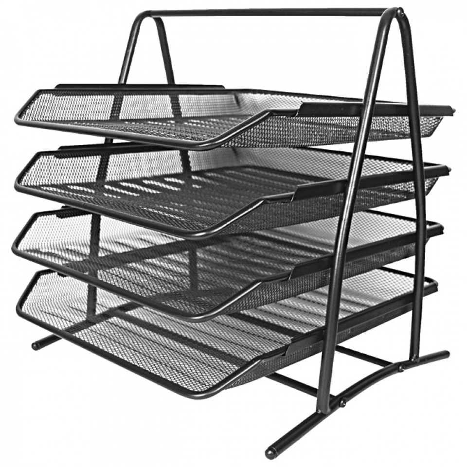 stolni stalak za spise; 4 ladice; vodoravni; žica; za spise formata A4; dimenzija 300x350x330 mm; crna boja