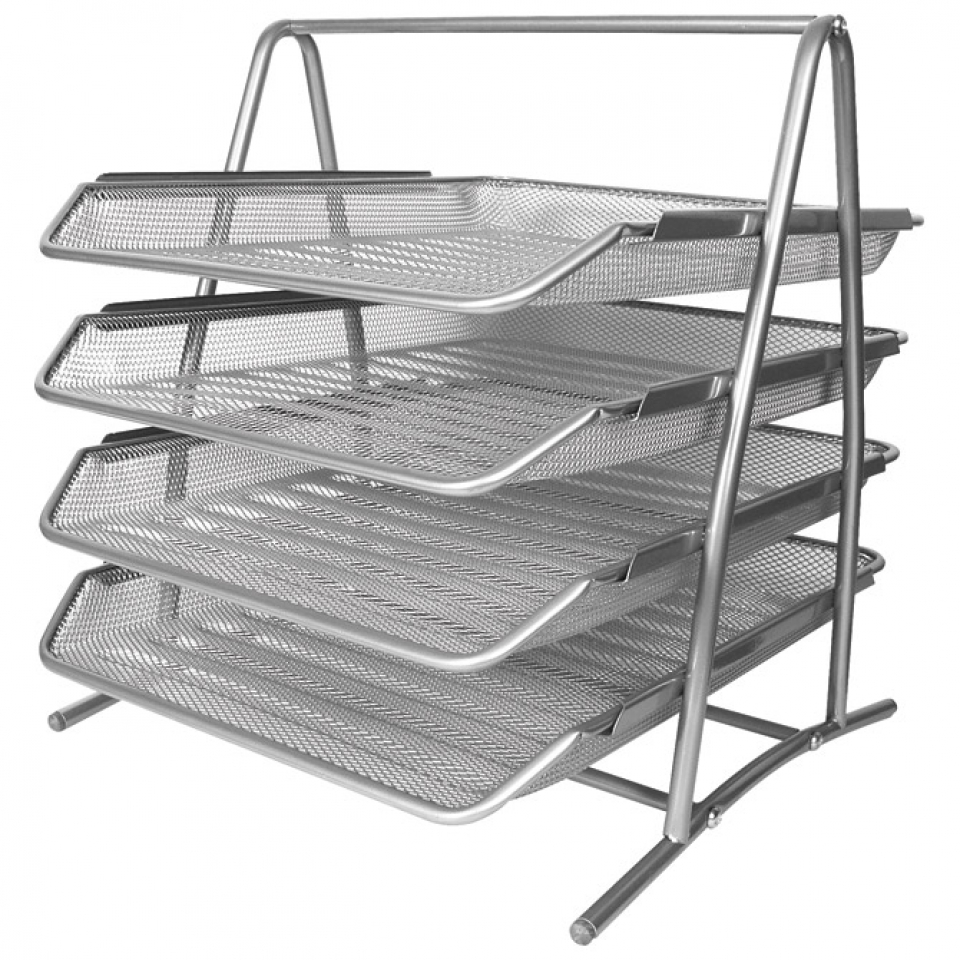 stolni stalak za spise; 4 ladice; vodoravni; žica; za spise formata A4; dimenzija 300x350x330 mm; srebrna boja