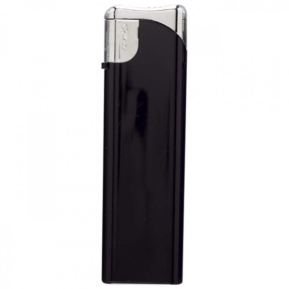 elektronski upaljač; sjajni; tanki; sa srebrnom glavom; mogućnost punjenja; crna boja